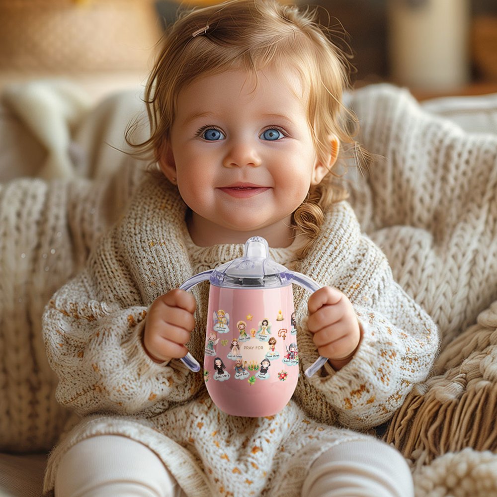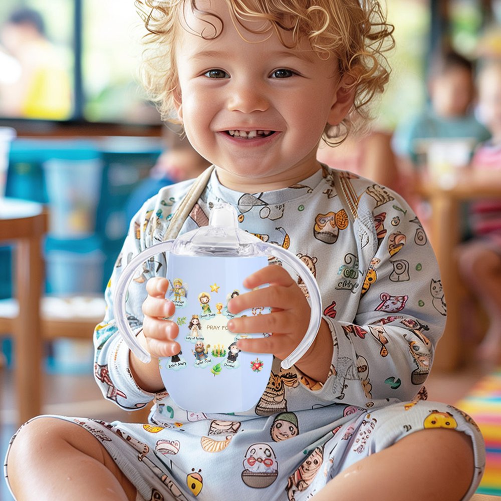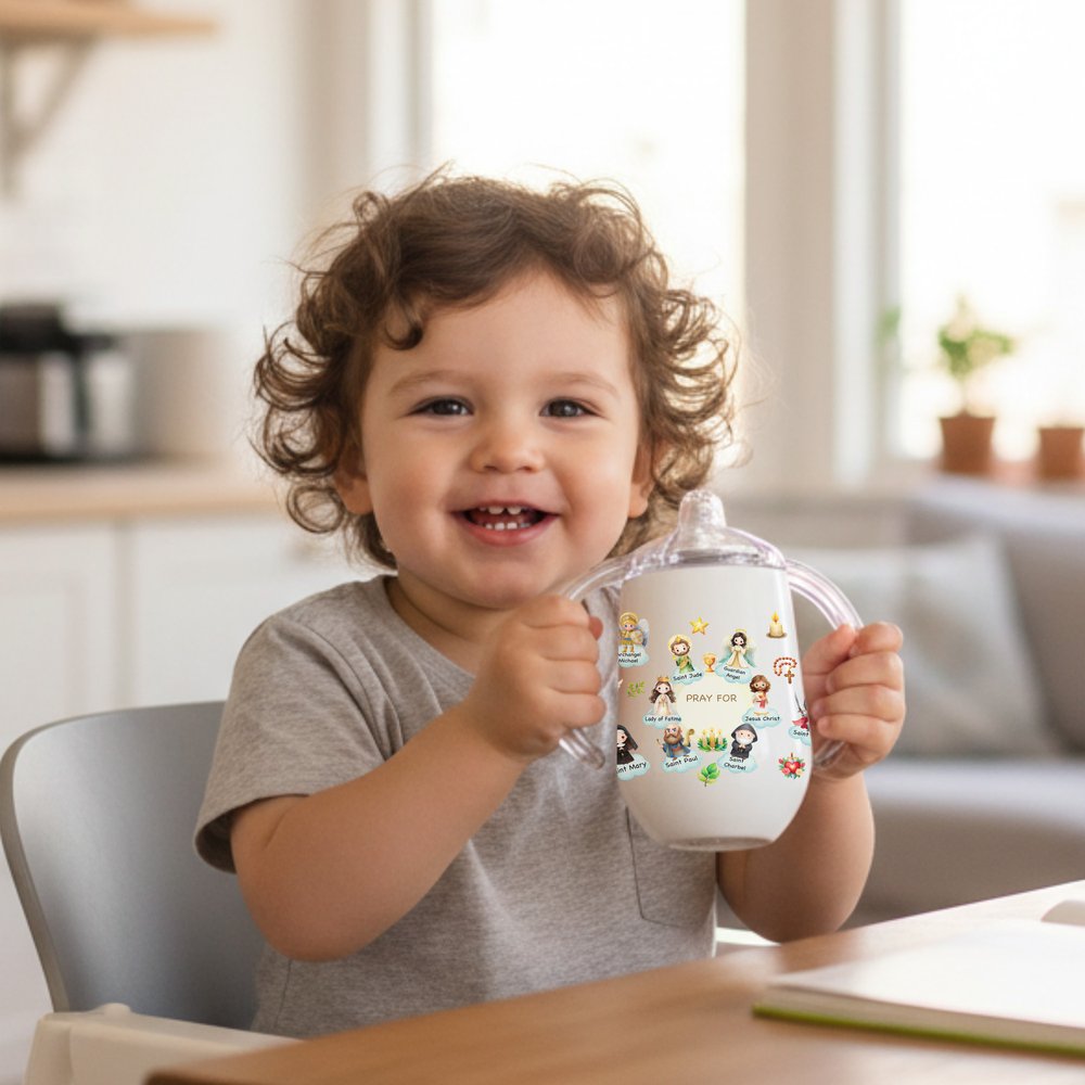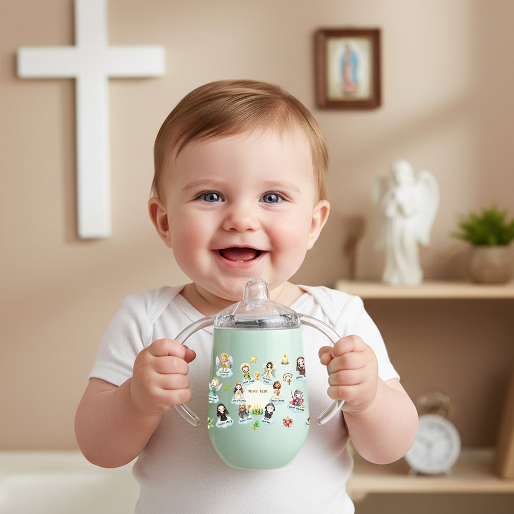 Adorable dessin animé sur le thème du saint gardien, disponible dans une sélection de couleurs de macaron pour le corps de la tasse. Permet l'impression personnalisée du nom exclusif de votre bébé, alliant parfaitement la foi catholique et le charme enfantin. Chaque gobelet devient un symbole de gardien unique en son genre, dont le design est magnifique et qui fait chaud au cœur.