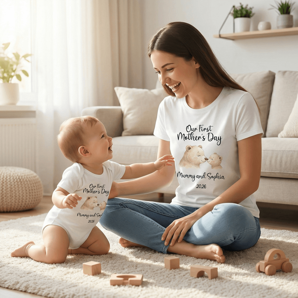 Ces tenues personnalisées et assorties pour la fête des mères constituent le cadeau idéal pour les nouvelles mères, les futurs parents ou les familles qui célèbrent leur première fête des mères ensemble. Il s'agit d'un cadeau attentionné de la part du partenaire, de la famille ou des amis pour honorer le lien spécial entre la mère et le bébé, combinant l'aspect pratique avec une signification émotionnelle profonde. Les noms personnalisés et les détails marquants transforment un simple cadeau en un souvenir précieux qui capture la magie de cette première célébration inoubliable.
